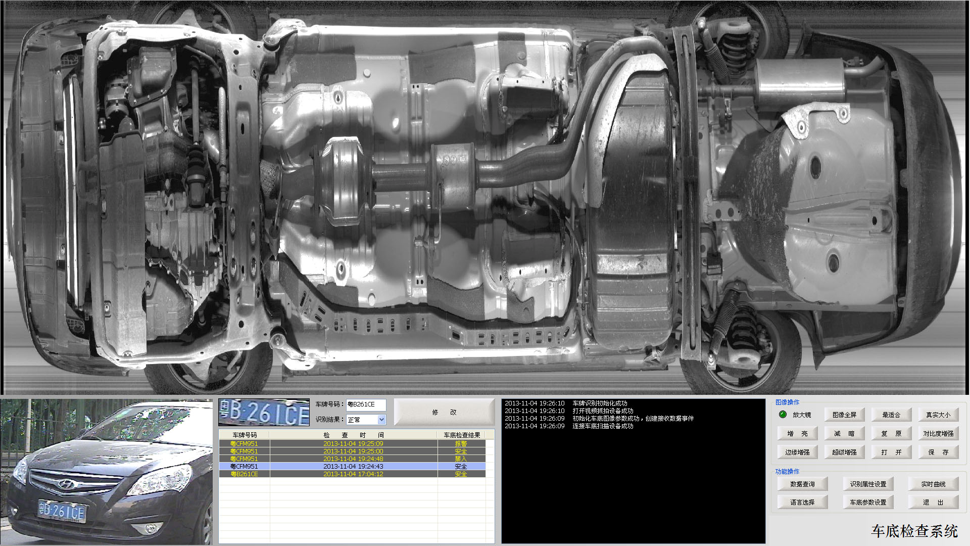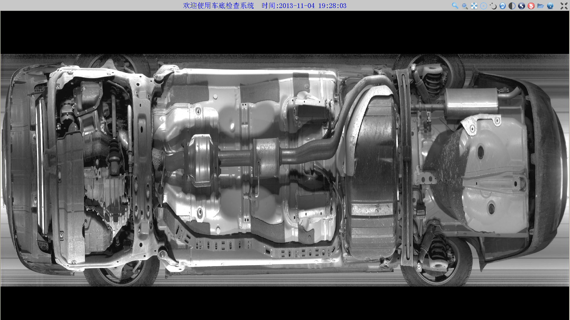12、车底图像自动拍摄:当车辆以1-60km/h的速度通过车底扫描仪时,车辆经过之后,系统在1S内显示该图像,当车辆在车底扫描仪图像采集区域内静止一定时间后再继续通过车底扫描仪后,车底图像显示完整。