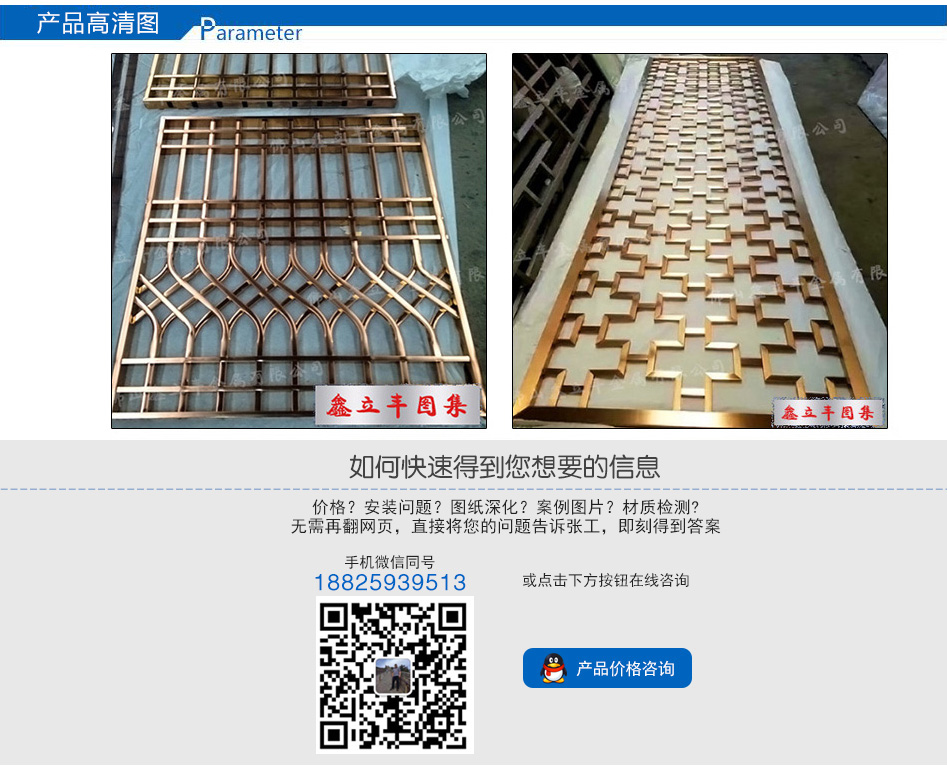 產(chǎn)品尺寸:根據(jù)需求定制 產(chǎn)品材質:201、304、316L 可選顏色:玫瑰金、鈦金、黑鈦金、香檳金、青古銅、紅古銅、咖啡金、灰色、按樣板定制 適用場所: 酒店、餐廳、會所、售樓部、商場、別墅、KTV