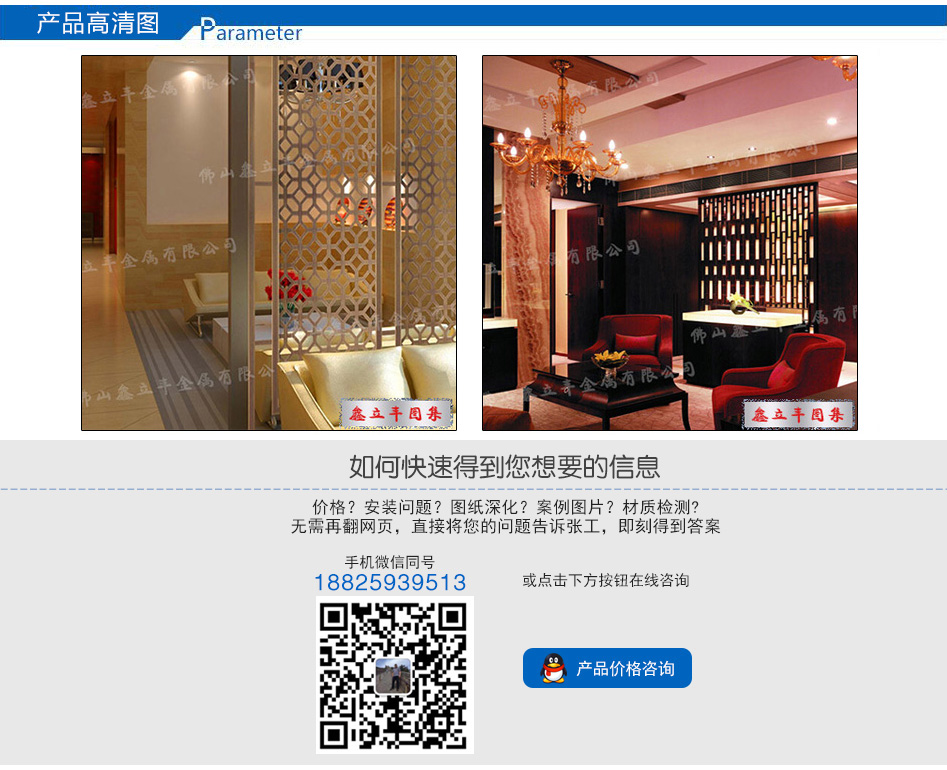 產(chǎn)品尺寸:根據(jù)需求定制 產(chǎn)品材質(zhì):201、304、316L 可選顏色:玫瑰金、鈦金、黑鈦金、香檳金、青古銅、紅古銅、咖啡金、灰色、按樣板定制 適用場(chǎng)所: 酒店、餐廳、會(huì)所、售樓部、商場(chǎng)、別墅、KTV