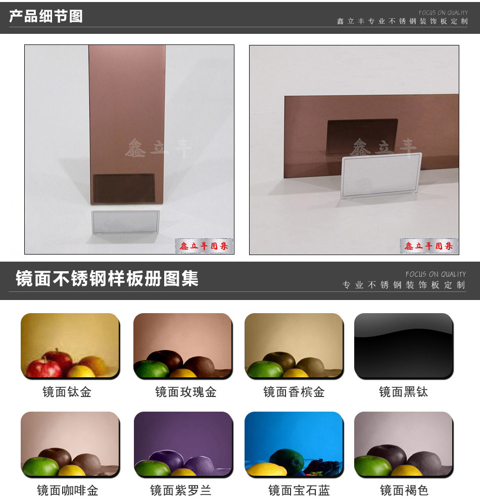 表面顏色 | 玫瑰金、鈦金、香檳金、黑鈦金、青古銅、紅古銅、其他定制顏色 | ||