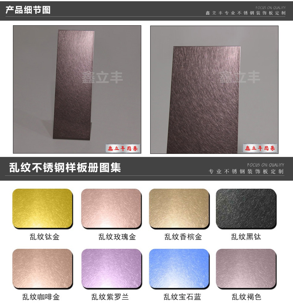 表面顏色 | 玫瑰金、鈦金、香檳金、黑鈦金、青古銅、紅古銅、其他定制顏色 | ||