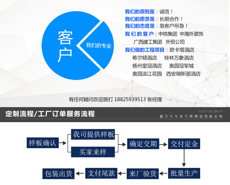 產(chǎn)品尺寸:根據(jù)需求定制 產(chǎn)品材質(zhì):201、304、316L 可選顏色:玫瑰金、鈦金、黑鈦金、香檳金、青古銅、紅古銅、咖啡金、灰色、按樣板定制 適用場(chǎng)所: 酒店、餐廳、會(huì)所、售樓部、商場(chǎng)、別墅、KTV