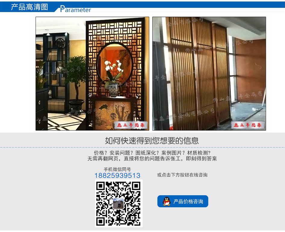 產(chǎn)品尺寸:根據(jù)需求定制 產(chǎn)品材質(zhì):201、304、316L 可選顏色:玫瑰金、鈦金、黑鈦金、香檳金、青古銅、紅古銅、咖啡金、灰色、按樣板定制 適用場所: 酒店、餐廳、會所、售樓部、商場、別墅、KTV