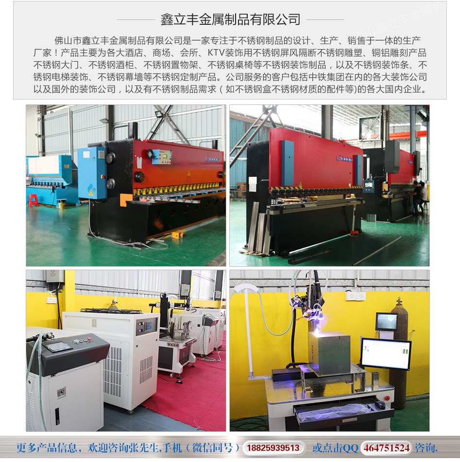 產(chǎn)品尺寸:根據(jù)需求定制 產(chǎn)品材質(zhì):201、304、316L 可選顏色:玫瑰金、鈦金、黑鈦金、香檳金、青古銅、紅古銅、咖啡金、灰色、按樣板定制 適用場所: 酒店、餐廳、會所、售樓部、商場、別墅、KTV
