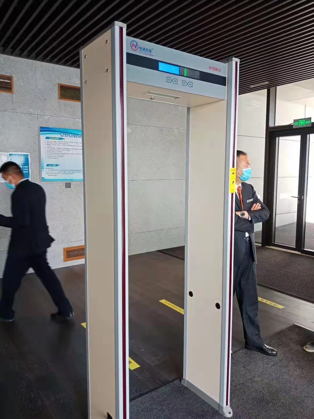 红外测温带金属安检:有机将红外测温与金属安检融合,通过金属安检门前,先进行红外人体测温,真人发音报警,提示体温异常,有效防止规模性疾病传染;